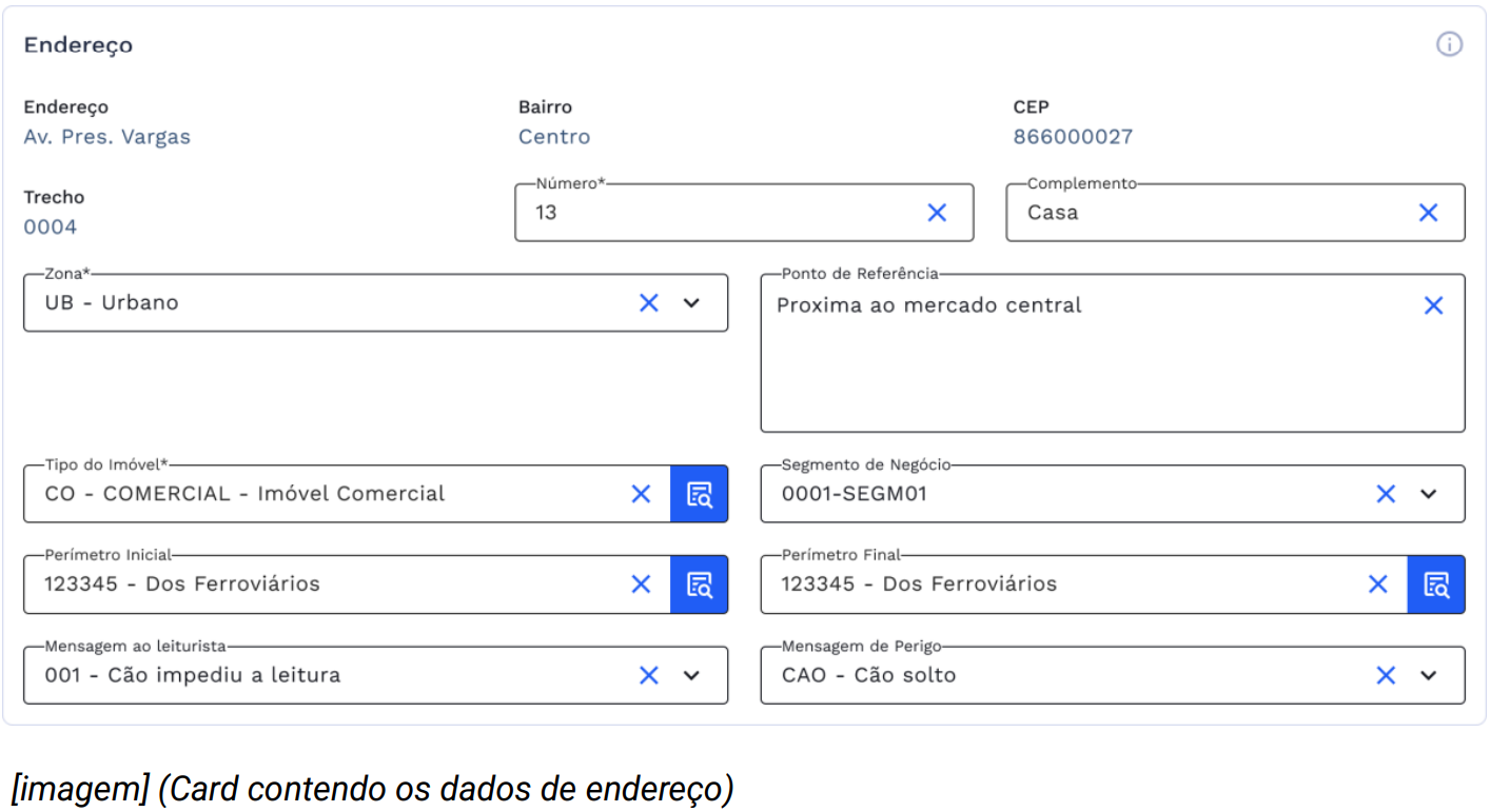 - No grupo de endereço contamos com os dados de logradouro, bairro, CEP e trecho apenas em modo consulta.