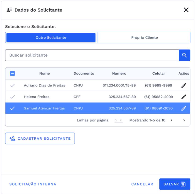 Caso deseje, é possível definir o próprio cliente como solicitante.