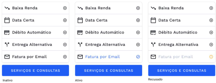 O sistema conta com algumas validações para indicar o estado atual do serviço referente ao perfil respectivo da UC/Cliente. As verificações possuem três estados: Inativo, Ativo e Recusado.